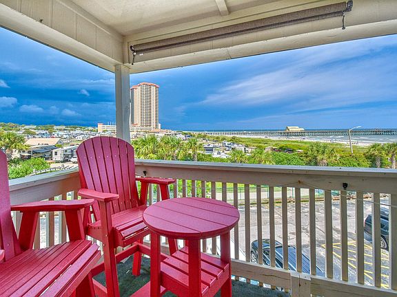 2bed/2ba FULLY-FURNISHED condo in OCEANFRONT building with EXPANSIVE and UNOBSTRUCTED Angled Oceanfront Views facing north. See more at https://storybookviewer.com/96416-119047. This unit is just steps to the iconic Apache Pier—the East Coast’s longest wooden pier. This unit has been COMPLETELY REMODELED to include: NEW guest bath and enlarged and renovated master bath, NEW kitchen cabinets, granite countertops, backsplash and oven. 2 NEW HVAC units, All NEW ceiling fans, NEW plantation shutters in living and bedrooms, NEW front door, NEW exterior door from master to balcony and all NEW interior doors. Lots of NEW furniture including: Adjustable master bed, 75" TV with surround sound and new sofa and chair for living room. SHORT-TERM rent IS ALLOWED in this building but the sellers have used this as a 2nd home so it's in LIKE-NEW condition. You'll love the convenience of having the parking area right under your unit for easy access AND it create a nice open area for expanded ocean views. Wake up to panoramic Atlantic views from both the living room and master bedroom, each opening onto a private balcony where you can watch the sunrise over the water. Located close to fantastic dining, shopping, and entertainment, it’s perfect for beach lovers and pier-side fun seekers alike! Well-managed property and the HOA fee covers so much including: water/sewer, trash, internet/cable, regular pest control and grounds/pools maintenance. Short drive to everything Myrtle Beach and North Myrtle Beach have to offer including: Myrtle Beach International Airport, Broadway At The Beach, Barefoot Landing, The Market Common, Myrtle Beach State Park, Coastal Grande Mall, 2-Tanger Outlets, and Coastal Carolina University (CCU),marinas, public docks, landings, restaurants, golf courses, shops, entertainment. Also, only 90 miles south to beautiful Charleston, SC