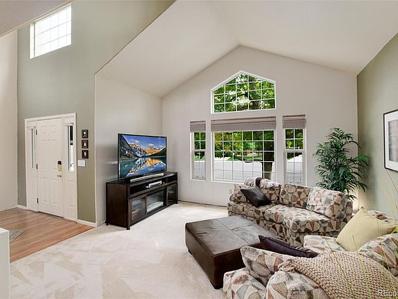 This MUST SEE Northridge home is in one of the most desirable neighborhoods & has one of the best mountain views in all of Highlands Ranch. Sitting on the top of a hill & tucked away in a cul-de-sac, this home has an incredibly situated lot that backs to dedicated open space & boasts a virtually unobstructed view of the Front Range from all levels. Enter through a covered front porch & into a gracious foyer w/ vaulted ceilings. Enjoy the incredible mountain view as you cozy up to the fireplace in the family room. The updated kitchen boasts lots of newly painted cabinets, an island with stunning quartz countertops, stainless steel appliances, & a breakfast nook. Enjoy access to the low-maintenance composite back deck with retractable awning, & more of those views! This home is great for entertaining with a formal living & dining room, & a great flow throughout the space. Also on the main level is a convenient full bathroom & a designated bedroom or office w/ access to the deck, perfect for those who work from home. The laundry is off the oversized garage, also providing a good mudroom. Upstairs you’ll find a sizable primary bedroom & an attached en suite bathroom w/ double sinks, soaking tub, an oversized shower & new LVP flooring. There are also three large secondary bedrooms which share the hall bath. The walkout basement provides an additional 850 finished square feet which includes another bedroom, bathroom, and living area, plus plenty of unfinished storage space. The kitchenette makes for a great party room or even additional apartment space. Head out to the back yard and soak in that view from your hot tub or the charming porch swing. Additional features of the home include seller owned solar panels, lots of perennials in the beautiful landscaping, modern lighting and ceiling fans. Enjoy access to all of the wonderful amenities that HR has to offer: rec centers, parks & miles of trails. This home w/ a wonderful floorplan, lot, & location will not disappoint!
