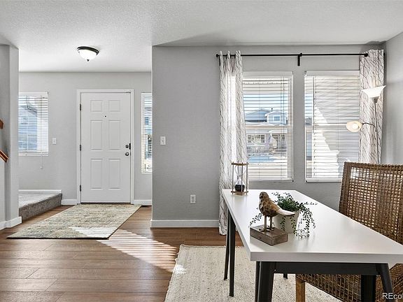 This inviting two-story home in the desirable Roxborough neighborhood offers four bedrooms, a finished basement, and over 2,600 square feet of thoughtfully designed living space. The main floor greets you with a versatile front room that can be used as a secondary living area, formal dining space, or even a playroom. Just beyond the front room is the spacious and open living room which is truly the heart of the home—a warm and inviting space with custom built-ins and view to the backyard. The eat-in kitchen boasts a central island, convenient pantry, stainless steel appliances, granite countertops, and abundant cabinetry. Sliding doors open to an oversized deck with a pergola, perfect for al fresco dining or relaxing outdoors. Despite the generous deck space, the backyard still offers plenty of grassy area for play or pets. Upstairs, the vaulted primary suite serves as a serene retreat with custom closet organizers, an en-suite bathroom, ample natural light, and lovely views. Two additional bedrooms and a full bathroom complete the upper level. The fully finished basement adds even more functional space, featuring a cozy media area, an additional bedroom, and a three-quarter bathroom—perfect for a guest suite, recreation room, or home gym. Additional highlights include the included washer and dryer, picturesque foothills views, and close proximity to exceptional outdoor recreation. Within minutes, you can enjoy Waterton Canyon Trail, Chatfield State Park, and Roxborough State Park, making this home ideal for those seeking an active and outdoorsy lifestyle.