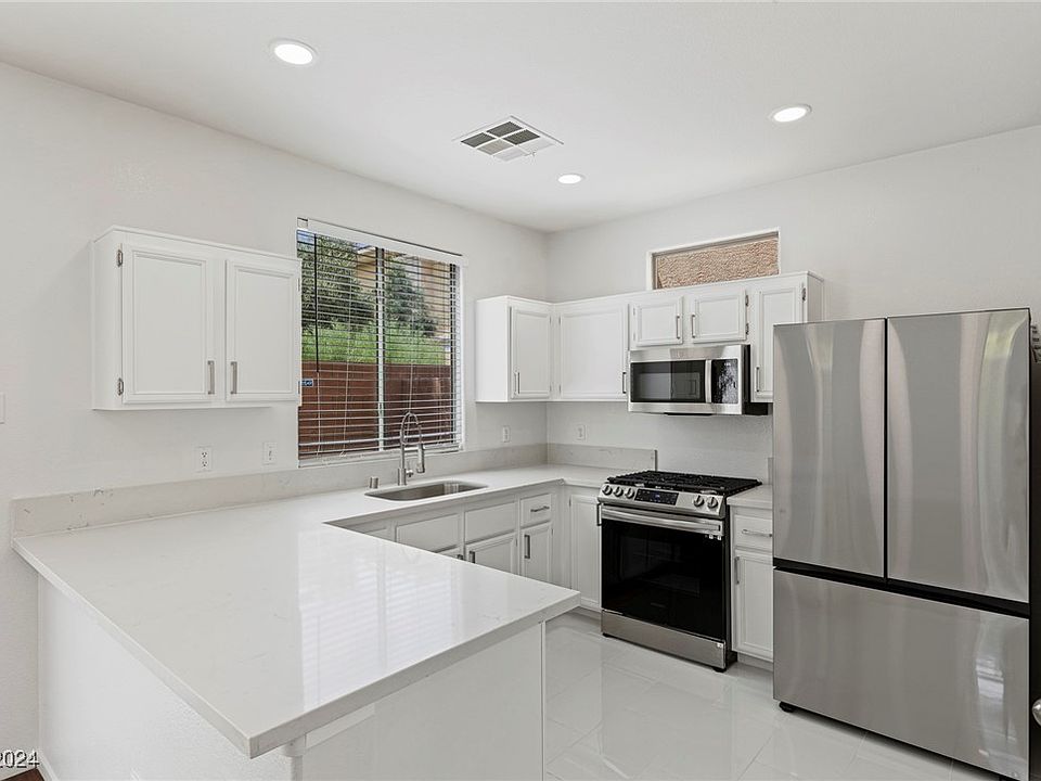 This renovated two-story home presents the incredible opportunity to live in Summerlin. On the main level, you can enjoy the family room, beautifully modernized kitchen with stainless steel appliances, and dinette that opens to the zero-maintenance outdoor area. Along with all of the bedrooms, the laundry room is conveniently located on the upper level. Primary bedroom amenities include a balcony, walk-in closet, and remodeled bathroom with a double vanity. Two additional bedrooms complete the upper level, including one with a walk-in closet. The new owner will appreciate that the HVAC system is less than a year old. This property is less than a mile away from the 215 freeway, providing easy access to all the entertainment, fine and casual dining, and exclusive retail shopping that Summerlin has to offer.