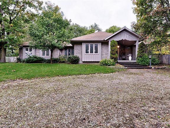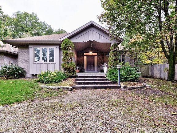 LOTS OF PRIVACY! Lovely 2 bedroom/2 bath brick bungalow in Dalton Subdivision.. located at the end of a dead end street. Double car attached garage, two driveways, large fully fenced back yard and beautiful landscaping. The stunning front entrance with stone wall and large covered porch give this home great curb appeal. Large ceramic foyer leads to an inviting living room with high ceilings and gas stone fireplace. Oversized glass sliders off the dining room lead to an outside deck. Bright kitchen with lots of cupboards and appliances are included. Large master with 4 piece en-suite and his/her closets. Large second bedroom with more double closets. The main floor den could easily be converted into a third bedroom. Main floor laundry. Unfinished basement with a walk-up to the garage..roughed in for a third bathroom. Central Vac (new), Central Air and Hot Water Heater is owned. Close to the Pinery and beautiful beaches. Check it out!