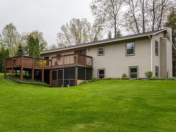 Gorgeous Ranch Walkout and views on 3.5 acres, Texas Twp, Mattawan Schools, just seconds to Texas Corner and all that happens there! Meticulous landscaping, triple pane windows, 6 year old roof, new screen porch and stocked pond. The main level cherry finish kitchen with granite and stainless and eating bar open to the large dining area with slider to a huge deck overlooking the lovely fenced yard and pond. The living room has propane cast iron stove, there is a main floor master with master bath and guest half bath. The walkout level has a family room with wood burner, addl bedrooms and family bath. There is a new, beautiful screen porch opening to a lovely yard leading down to the stocked pond with bass and bluegill.