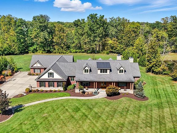 Exceptional luxury estate at end of a quiet cul-de-sac on 5.4 private acres. Custom built in 2015. Approx. 7000SF. Bright open floorplan w/ tall ceilings, 8ft solid doors, hardwood floors, gourmet kitchen w/ quartz counters, walk-in pantry, Bosch SS appliances, open to living Rm w/ stone fireplace, walkout to patio. Secluded 1st floor Owner's Suite w/ his/hers walk-in closets, ensuite bath w/ granite, oversized shower, soaking tub. Private study w/ built-ins. 3 add'l bedrooms each w/ full bath. Large 3-season room w/ slate floors, open to covered patio w/ wood-burning stone fireplace, stunning views, perfect for entertaining. Walkout LL w/ sauna. 4-car garage. Guest suite is ADA-accessible w/ private entrance, attached garage, 2 bedrooms, 2 full bath, laundry, living room open to private patio. State-of-the-art geothermal. Whole home generator. Indian Hill Schools. No septic! Rare opportunity in one of the most prestigious communities.