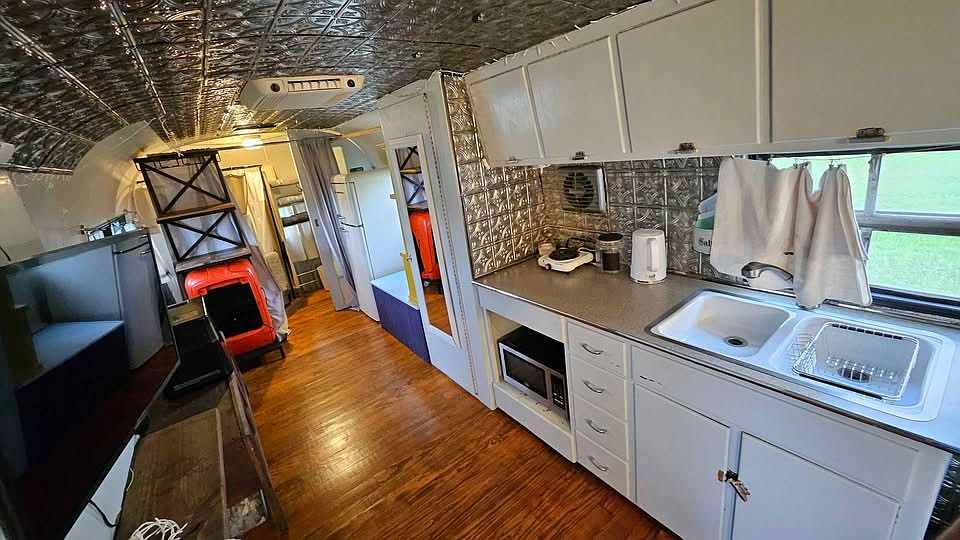 Parking lotPeaceful secluded neighborhoodVintage renovated airstream camperActual flush toilet