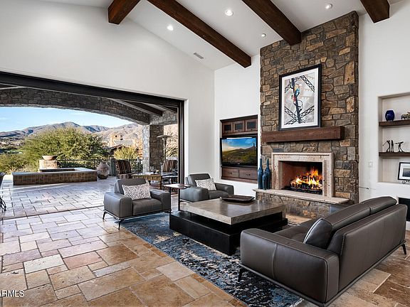 Nestled In the low-density Village of Lone Mountain II, with panoramic & expansive views of the Continental Mountains & Geronimo golf course, you will find this magnificent home.The craftsmanship of this Tierra Custom home is evident at every turn. It is no exaggeration to say it is all in the details: multiple stone fireplaces & accent walls, hand-hewn beam & tongue & groove ceilings, solid 8 ft alder doors & cabinetry to name a few. At the heart of the home is the Great Room with a soaring fireplace, a large wet bar, an adjacent wine room & fully retractable doors that open to one of many outdoor living areas.The private master wing is on the main. Guests will enjoy the casita or the lower level bedrooms with their own theatre room & patio. The home you have been waiting for!