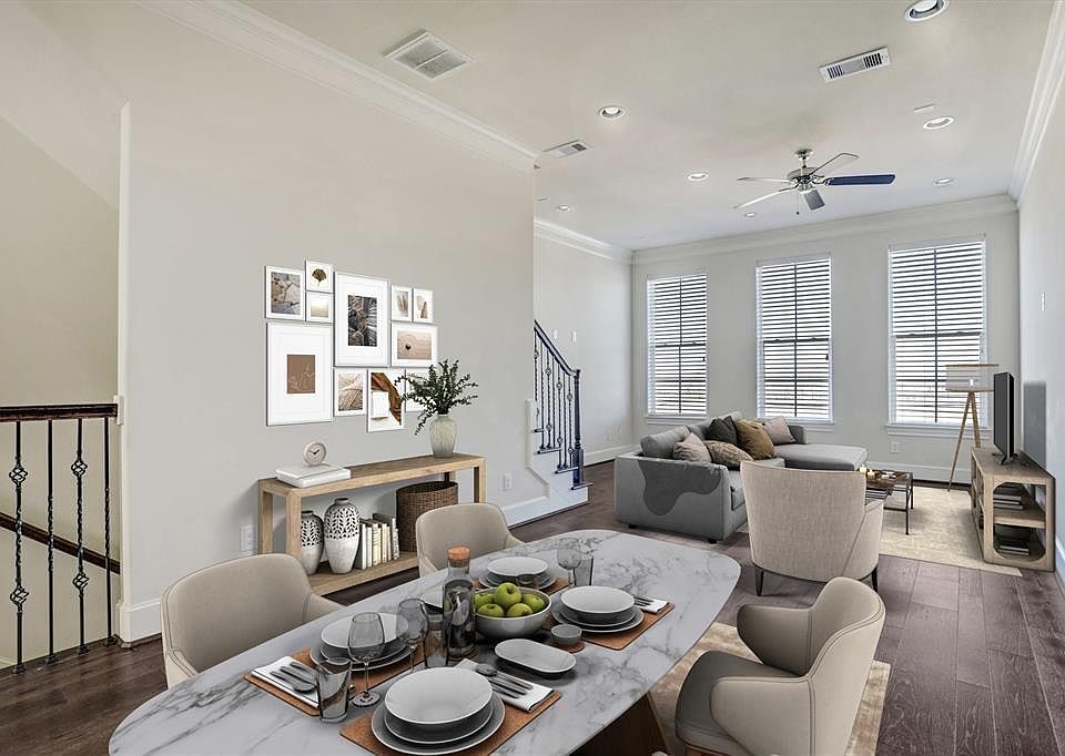 Gorgeous home located in the gated community Fannin Station. Located just blocks away from the Texas Medical Center and the Museum District. Close to 610 and 288. Easy access to Downtown and all over. Shopping, entertainment and restaurants very close by. 3 major freeways and Metro light rail is just around the corner. Wood floors, 2 1/2 baths, walking trail, lake, area pool, tankless water, double paned windows, all appliances and washer and dryer included. It is a must see! FANNIN STATION (Subdivision) is located on Fannin St. Set your GPS to 9663 Kings Cross Station, park in any of the available parking spots across. The home (garage) is behind 9665 Kings Cross Station - front door is through walkway around the corner. This home has been virtually staged to illustrate its potential.