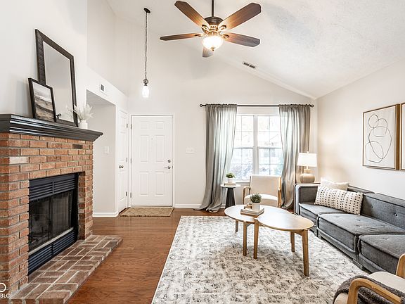 Tucked within in the quiet, tree-lined Pines neighborhood, this beautifully maintained 2-bedroom, 1.5-bath home offers the perfect blend of comfort, character, and modern updates. Light-filled living spaces and vaulted ceilings create an airy, open feel, while the cozy wood-burning fireplace adds warmth and charm to the main living area. The kitchen is both stylish and functional, featuring stainless steel appliances, granite countertops, and a tiled backsplash. The adjoining dining area opens to your private backyard retreat-complete with a full privacy fence, spacious deck, patio, and fire pit-ideal for hosting gatherings or simply relaxing and enjoying the mature trees and Indiana seasons. The primary suite offers a peaceful escape with a generous walk-in closet and private full bath, while the second bedroom provides flexibility for guests, a home office, or creative space. The washer and dryer are included for added convenience. With its inviting design, mature landscaping, and location near parks, shopping, dining, and top-rated schools, this home perfectly captures the charm and lifestyle that make Fishers one of Indiana's most desirable places to live.
