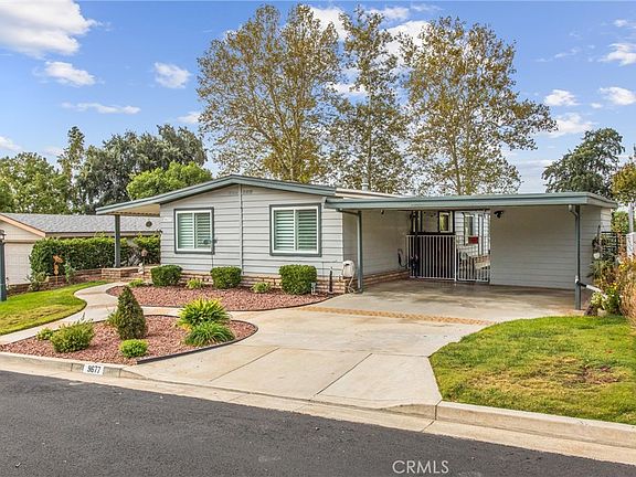 Beautiful Sharondale Home on the Greenbelt. Located in a 55+ senior community in Calimesa. Triple wide manufactured home with 3 bedrooms and 2 bath, plus an office. Great split floorplan with 2 bedrooms and bath in front and Primary Ensuite at the other end with Exquisitely upgraded Bath with soaking tub, dual sinks and Seperate Shower. Spacious Greatroom with TV area, Pool Table and Dining area. Kitchen with updates, spacious counter tops, coffee bar, side island with eating bar. Dual Pane Windows. Upgrades 2021 heating and air conditioner and 2024 a 50 year roof. Large Covered Front Porch, Carport, Large Storage or workshop you decide and fenced backyardn with special artificial Turf, vinyl fencing and wrought Iron fencing on the green belt. Special connection for a generator to run. Sharondale offers clubhouse, swimming pool and activites. Locate close to the I-10 Singleton exit that goes to Upper Yucaipa via Bryant to Hwy 38 and on ramp to Beaumont via Singleton on ramp. Manufactured home 433.