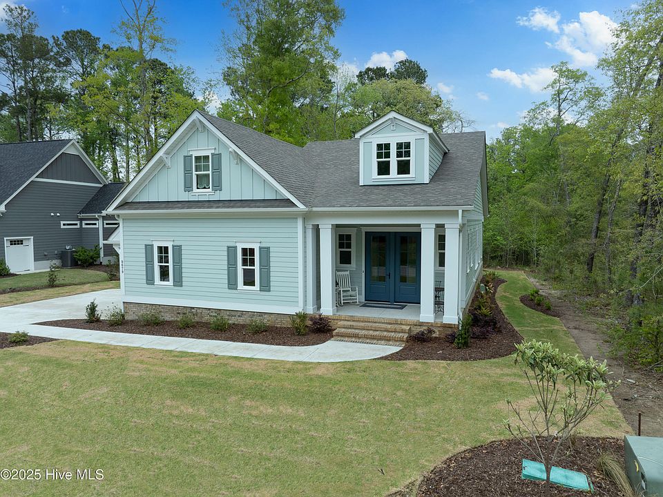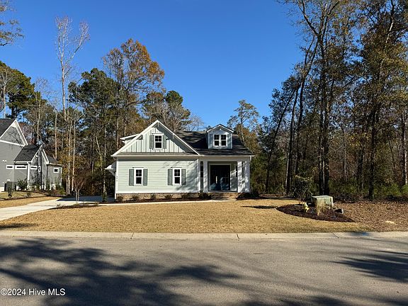 Here's your chance to call one of the most sought after master planned communities in the Wilmington area, @thebluffsnc, home. This home is ideally located surrounded amongst majestic hardwoods and towering pines. Continuing with the theme of nature, this home is located across from conservation area. The conservation area features miles of nature trails just steps from your front door. The Heron Cove is one of our most popular floor plans, featuring a private primary in the rear of the home with large windows showcasing all the nature in the rear of the home. Two other bedrooms are located on the first floor as well as one full guest bath and powder room. Upstairs features a lounge and full bath. Some notable features of this home are: 10' first floor ceilings with 8' doors, solid core doors to all bedrooms, open cell spray foam encapsulation, brick foundation, crushed shell porches, natural gas cooktop, over-sized patio, zero entry primary shower, full tile guest shower, full overlay, soft close, dove tail, full extension cabinetry, 42'' natural gas fireplace with beautiful tile surround, and much more. This home is move in ready and will not be on the market long, so be sure to schedule your showing today!