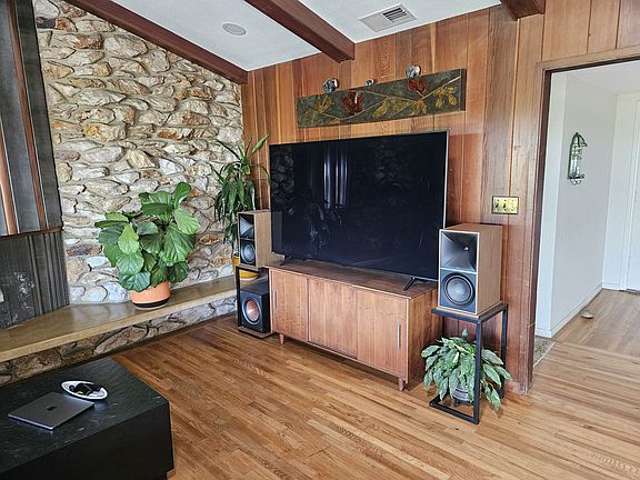 Mid century ranch homeLarge stone wall fireplacePrivate yardRaised vegetable bedsTons of natural lightOriginal hardwood floors