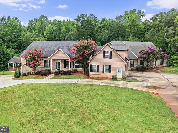 Rare opportunity in McDonough with no HOA - a single-family property offering two fully separate residences on one private approx. 2.7-acre homesite, set far back from the road for exceptional privacy. Ideal for multi-generational living, in-law accommodations, or income-producing flexibility. Side A offers approx. 3,000 sq ft with 4 bedrooms, 5 full baths + 1 half bath, a huge flex room, and a finished basement featuring a theater room and a private in-law suite with living area, kitchen, bedroom, full bath, and separate exterior entrance. Includes a 2-car tandem garage. Side B offers approx. 3,000 sq ft with 3 bedrooms, 3 full baths, bonus room, and a 3-car garage. Both residences feature brick and Hardie Plank construction, remodeled kitchens with 42-inch cabinets, quartz countertops, and large islands, coffered ceilings and double tray ceilings, and high ceilings throughout. Owner's suites include jetted tubs and glass showers. Outdoor amenities include a fenced backyard, swimming pool, basketball court, and gazebo, creating a true private estate setting rarely available. This beautiful property is close proximity to Henry Town Center which has restaurants, banks, eateries and groceries stores nearby. Easily accessible to major highways. Offered at $945,000. Don't delay schedule your private showings today by appointment only.