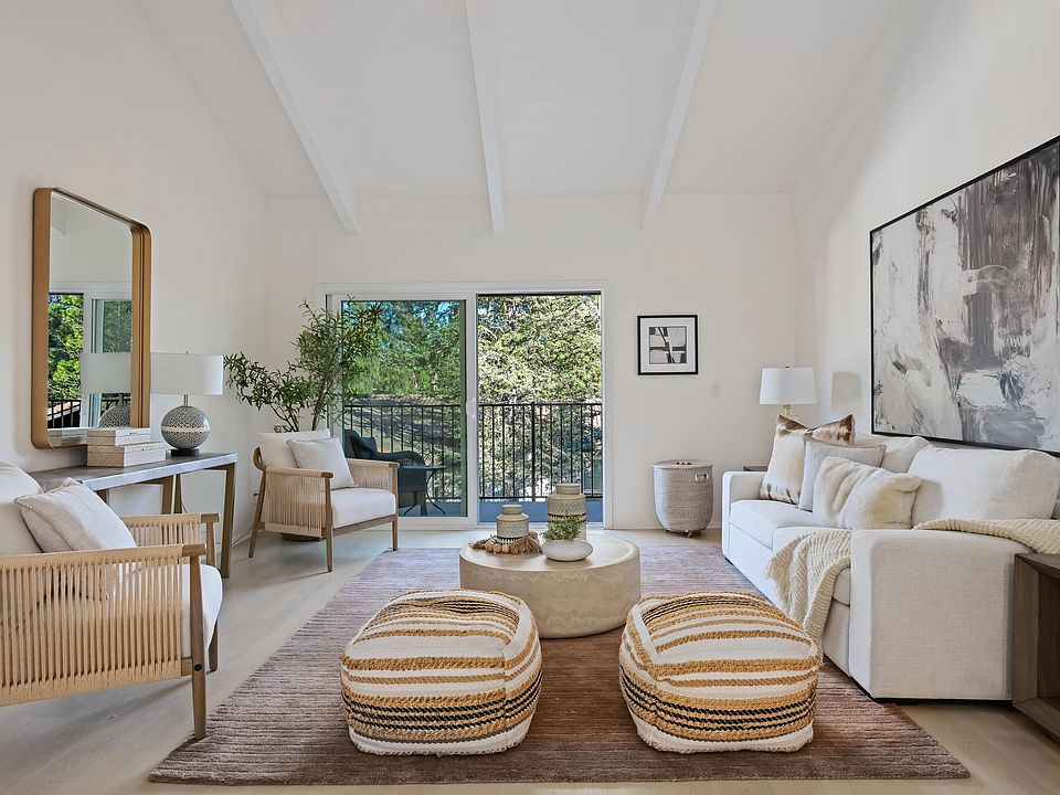 Bright and updated 1BD/1BA condo in Santa Barbara Highlands with soaring vaulted ceilings and sunny southern exposure. The remodeled kitchen features full-height cabinetry, stainless appliances, water filter, recessed lighting, and butcher block counters. Enjoy updated dual-paned windows and sliding glass door, a new electrical panel, all new electrical outlets, split A/C and heat, added attic insulation, and a renovated deck with a privacy screen. HOA allows in-unit laundry for this floorplan. Low HOA fee covers water, trash, sewer, insurance, exterior maintenance, and more. Community offers 2 pools, clubhouse, and a quiet, convenient location between the Mesa and downtown. Includes carport with large storage cabinets. Enjoy mountain views and peaks of the ocean.