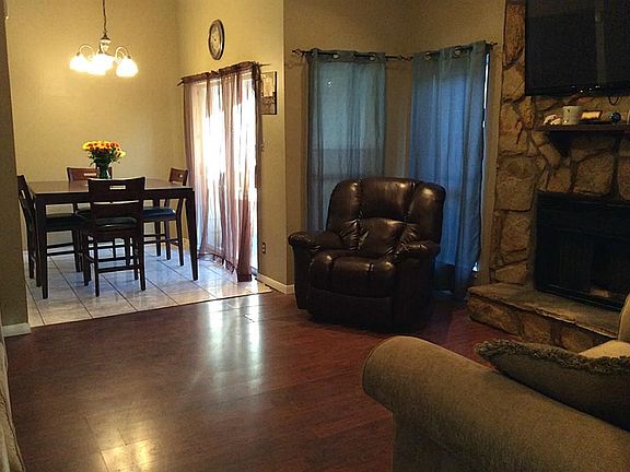 This adorable doll house is a must see! Owners made nice improv. over the yrs*Warm paint colors throughout, all fixtures and fan u/d in bronze* Laminate flooring in comfortable den that offers a beautiful rock wall f/p*Kitchen offers ample counter space w/ tile back splash and SS appliances* Dining rm w/access to covered patio area* Master has nicely u/d bath w/ recent tiled shower. Commode & vanity*Recent insulation in attic & duct work, large yd w/ back gate access to prk and pool area