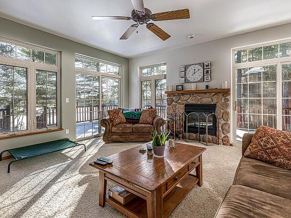 Designer ready end unit! Beautiful residences in the heart of Minocqua. Prepare to be impressed by this well appointed 2 bedroom home, nestled on the shores of Lake Minocqua. Unit features a private deck with breathtaking views of the scenic lake. The location is superb, with easy access to all local amenities, plus limitless recreational opportunities - fishing, golfing, hiking, biking, skiing, snowmobiling & the Bearskin Trail. This condo is tastefully finished and boasts quality finishes. First floor features large lake side living room with gas fireplace, master suite, additional bedroom, an eat in kitchen, laundry room, and access to the 2 car garage with extra storage area. The basement has windows providing nice daylight, huge family room, an additional office/den/exercise room, full bathroom and large unfinished area for storage. Exterior features include pier slip and beach area with sand frontage for all to enjoy. Experience maintenance free living today!
