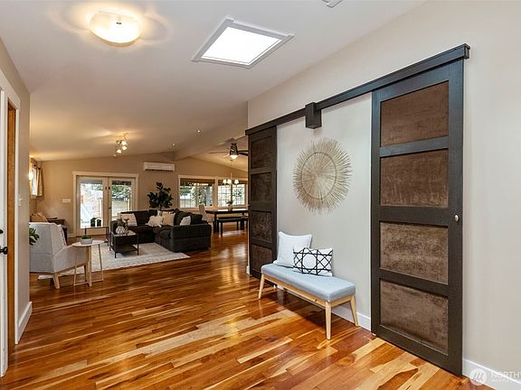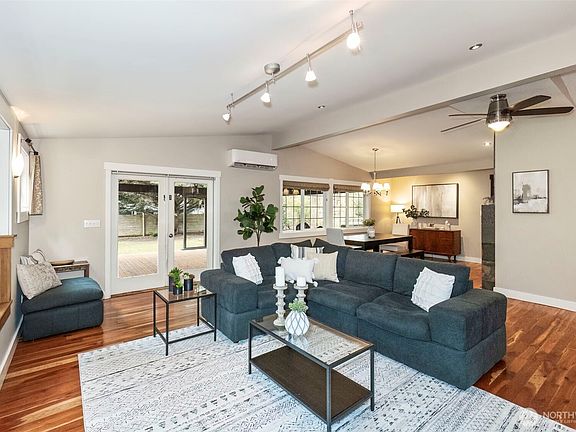 A classic rambler on Bainbridge Island! This one-level home features a beautifully updated kitchen and a spacious primary suite complete with patio and office. The level, sunny yard and covered west-facing deck offer opportunities for year-round outdoor enjoyment. Just five miles from the Seattle ferry and conveniently located along bus lines make for effortless transportation. With fast access to the neighborhood beach, and the nearby Battle Point Park and Grand Forest, you'll be just moments away from beaches, pickleball courts, and scenic trails, perfect for quintessential island adventures.