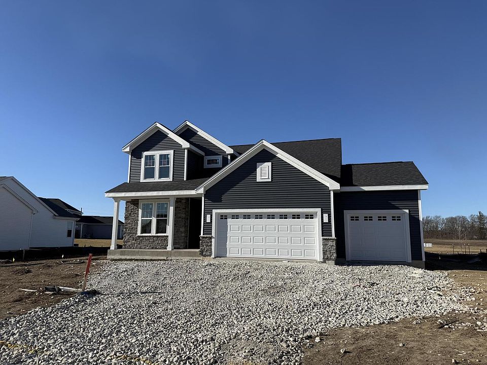 Welcome home to The Prescott by Stepping Stone Homes. Open floor plan features 4 Beds, 2.5 Baths and a 3 Car garage. This lot is a flat exposure. The kitchen comes w/ quartz countertops, maple-stained cabinets, and LG appliance package. LVP flooring in kitchen, dinette, and great room. You will find quality craftsmanship throughout such as 2x6 construction exterior walls, 9' first floor ceilings, and passive radon system. We offer a total Kohler/Sterling home experience. The Focus on Energy program provides each home with a Certified Energy-Efficient Certificate stating that our homes are more energy efficient than current WI code. Rendering may differ from actual exterior palette.