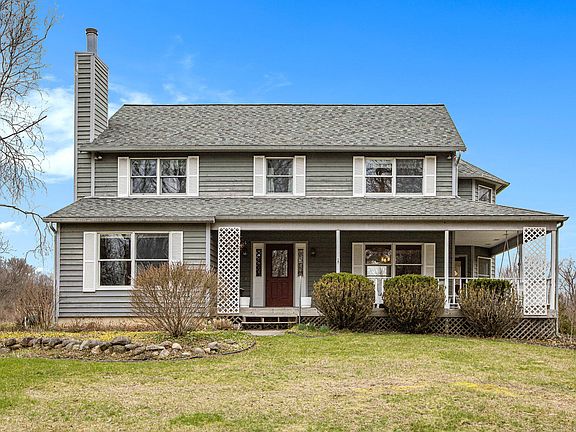 Beautiful Cedar clad Colonial on over 7 secluded acres with large wrap around porch offering amazing views of nature just minutes north of Dexter. Additional lot and acreage available. Enter the foyer with hardwood underfoot with formal dining to the right and a lovely living room with a cozy fireplace to the left. Study, first floor laundry, full bath, and fabulous screened porch round out the first floor extra amenities! Classic kitchen and nook with large picture window overlooking the meadow with woods beyond. Beautiful streams, meadows, and woods make for great walks year-round! Primary w/his and hers walk-in closets, bay window, and lovely bath. Main upper bath serves 3 additional bedrooms. Andersen windows throughout with whole house generator and new Lenox HVAC in 2016. Garden, fruit trees and grape arbor await the gardener. Be sure to watch the video tour.