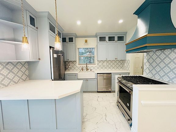 This luxurious split-level 3-bedroom, 3.5-bathroom home is a hidden gem in plain sight! Situated prominently on Olympic Blvd, it boasts an enviable location directly across from Roxbury Park. Upon entering through the elegant dual doors, you'll be captivated by its charm and sophistication. The grand living room, with its romantic fireplace, offers a stunning view of Olympic Blvd and features a staircase leading to the upper level. Adjacent to the living room is a cozy library with built-in bookshelves, both providing access to a private, enclosed patio. The kitchen is a masterpiece of design, featuring baby blue cabinets with gold accents, stainless steel appliances, and a stackable washer and dryer. No detail has been overlooked. Upstairs, you'll find three distinctive bedroom suites, each with ample closet space. One suite even includes a kitchenette for added convenience. Two of the bedrooms offer picturesque views of Roxbury Park and share a private balcony. Additional features include recessed lighting throughout, custom tile work, stunning wood flooring, and more. This charming complex is just blocks from Rodeo Drive, Century City, and is perfectly positioned across from Roxbury Memorial Park. A truly extraordinary place to call home! Terms: One year minimum lease. Security deposit is equal to one month's rent on approved credit. Sorry, no pets allowed.