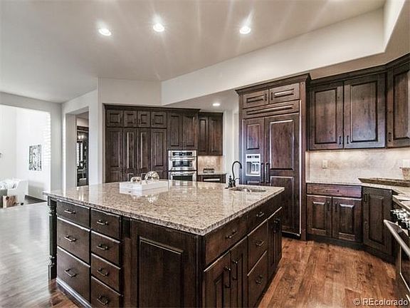 High quality estate by Celebrity Custom Home in Heritage Hills impresses with its style, smart layout and spacious footprint. Over 6400 finished square feet, this former model home has endless luxurious upgrades and designer touches that will accommodate any decorating style. Kitchen Aid professional range in kitchen Exercise room with high impact flooring 3-car garage with epoxy flooring and built-ins Mountain views from gated community Located in the gated community of Heritage Hills where swimming pools, tennis, basketball courts and recreation trails await, this gorgeous home is also near great public and private school choices, dining and shopping, and freeway access and the light rail station in the city of Lone Tree. Quality felt the moment one enters it, the large foyer and adjacent cocktail room makes it easy to envision the ease of entertaining. The large dining room with French doors open to a fireplace with built in grill on the wrap around, covered deck, and is great any time of year. Beyond the spiral iron and wood capped staircase, sits a secluded study wrapped in dark wood and gorgeous box beamed ceilings and iron light fixture. Further, the stepdown family room is joined to the kitchen and creates a wonderful gathering place to enjoy the Front Range views and warm fireplace. The large slab granite island complements the dark cabinets found in the kitchen. Offering plenty of storage along with the hidden pantry and soft close drawers, this kitchen adds to the chef's dream by including a professional Kitchen Aid six gas burner range, additional wall oven and microwave. The upper bedroom level of this home include a total of four bedrooms, each with their own unique and private bathrooms and custom walk-in closets. An oasis of tranquility is the master suite with big Front Range views, fireplace and coffee bar with fridge.Elegant 5-piece bath with slab granite counters, large soaking tub and huge custom walk-in closet with locking jewelry drawer and other useful closet features. Suitable for a variety of purposes, the walk-out basement is a great use of space. The workout room has special exercise flooring and a full wall of mirrors along with windows to the custom-fenced backyard. Perfect for off-season items, the large finished storage room is completed with built in shelving. The guest suite with bathroom and large rec room is handy for entertaining. Cozy up to the eye-catching gas fireplace with full wall stone mantle and watch the game. Enjoy the oversized windows and gaming area while grabbing a drink from the large walk-up bar with fridge and sink. With a large laundry room filled with storage options, a 3 car garage with an incredible built-in shoe and gear management area, this former model home isn't just another pretty face. Truly a work of functional art, it offers the latest stylish details, great layout and superb location for living today's busy lifestyles and for those commanding top shelf quality and design work from a reputable area builder. seller will Entertain leasing the property; please call Listing agent for more details