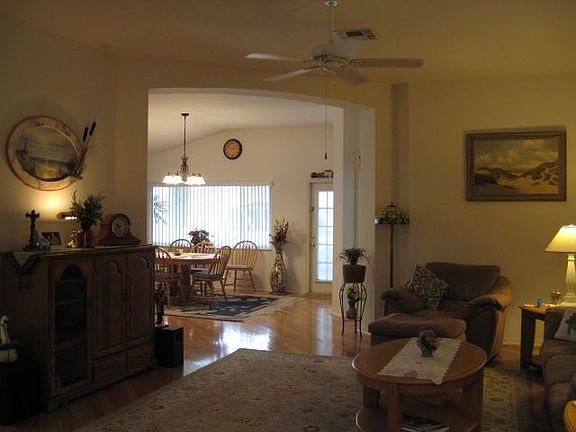 This spacious Kingston model home is located in the much sought after gated 55+ golf Community of On Top of the World. Home features Oak hardwood flooring throughout, tile in foyer, kitchen, and baths, neutral colors throughout, new whole-house reverse osmosis water filter/softener, soaking tub in Master bath, inside laundry, newer HVAC 2012, extended screened Lanai under birdcage, comfort height toilets, fresh exterior paint, utility sink, and more. Enter the tiled foyer to view the oversize Living Room with hardwood floors. Right of the Foyer, French Doors access the Den/Office. Guest Bedroom and Guest Bath are located off a private hallway on the right side of the home. On the left side of the home is the large eat-in Kitchen that features plenty of cabinet storage, lots of