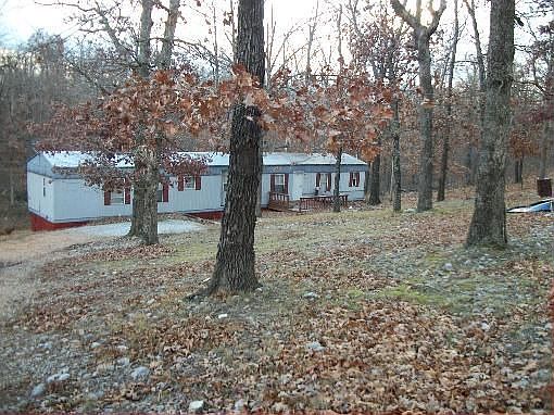 10876 - Secluded but still close to town. Good 16x80 manufactured home on 5 acres. Home is on rural water and just off black top road. Would make either a great residence or rental property. Lots of native hardwood timber on hilly terrain.