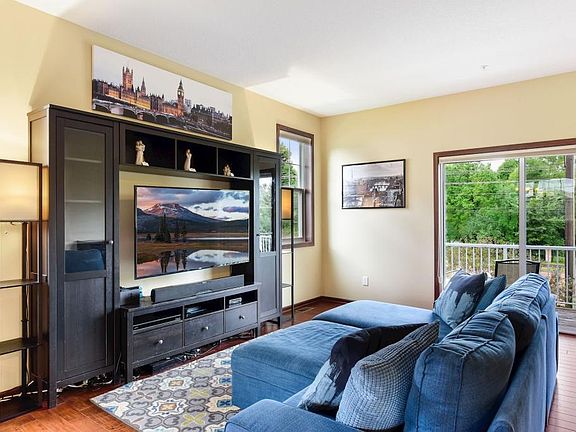 Are you looking for an end unit with tons of natural light from 3 sides? Loaded with upgrades? Community pool, play areas and park? Check, check and check! You will love the bright and open main floor, featuring solid hardwood floors, 3-sided gas fireplace with stone surround, living room that opens to the deck, spacious dining area, and your gourmet kitchen with granite counter tops, breakfast bar, corner pantry, and stainless steel appliances - including a gas range for the chef. Travel upstairs to find a large owner's suite w/ boxed vault, ceiling fan, walk-in closet, en-suite bath with huge shower and dual vanity, 2 additional bedrooms, full hall bath and laundry as well. The lower level features a family room with in-ceiling speakers - perfect for movie night - and a nice open space as you enter from the garage. Imagine relaxing by the fire or perhaps a morning coffee or evening beverage on your deck - with no neighbors in site. Not to get ahead of ourselves, but welcome home!