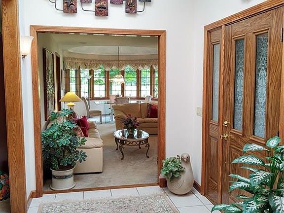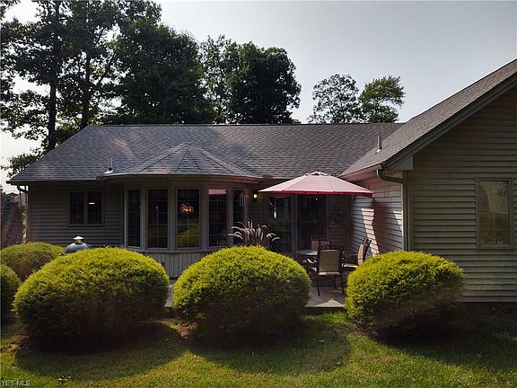 This is a beautiful, meticulously maintained ranch, sitting on an acre of land that provides a gorgeous view of Lake Evans. You are welcomed into this roomy, 2178 square foot home by a skylight in the foyer, allowing for ample natural light. To the right is a living room and dining room boasting a large dome ceiling atop a wall of Anderson windows allowing more of the natural lighting. There is an open floor plan in the kitchen, and great room, with a dinette area that also has a dome ceiling and a wall of windows. The one owner home has 3 bedrooms and 2 1/2 baths. The master bedroom has it's own bath, while the other 2 bedrooms are connected by a Jack and Jill, full bath. The large 2 car attached garage has an extra storage closet and area for more storage. At the end of the driveway, is a 10 foot high pole barn which can easily house 2 more cars, or other recreational vehicles, and still have room for a workshop. Some of the updates include a new roof in 2019, a new water filtration system in 2020. With beautiful oak trim and plenty of storage throughout, this home is a must see!