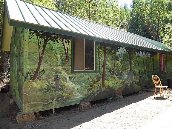 8 acres in Rural Talent 3 Bedroom 1 Bath Log Home Approx. 1,400 square feet, Large Sunroom addition 2 story. A unique Retreat like setting with beautiful landscaping throughout , murals, a waterfall feature. New laminate flooring and paint. Private Driveway, 40 Foot Shop with Electric and Wood Stove, Delicious abundant well, water and 2,000 gallon storage tank. Large Greenhouse, newly remodeled gazebo, and multiple large garden areas, including 36 6x6 raised beds. Owner finance not available.