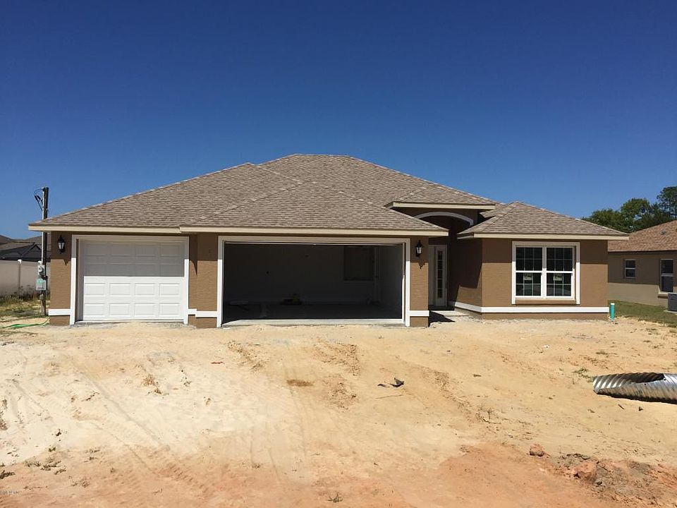 NEW CONSTRUCTION HOME!! 3 Bedrooms, 2 Baths, 3-car garage + covered rear patio!! 1768 living sq ft, split bedroom plan, this model offers a warm and inviting, fully open concept. Upgraded features include granite countertops in the kitchen & baths, stainless steel appliances, 5-1/4'' baseboards throughout, smart panel with centrally wired cable and Internet, ceiling fans in all bedrooms and great room. Master bedroom with dual-sinks, spacious walk-in closet, and tile shower w/bench seat. Other features include tile floors in all wet areas, inside laundry room, vaulted ceiling, HUGE 3-car garage! 1-year builder warranty. Great school district, underground utilities including County water/sewer, excellent location in SW Ocala gated community of Meadow Glenn. Estimated completion April 2017.