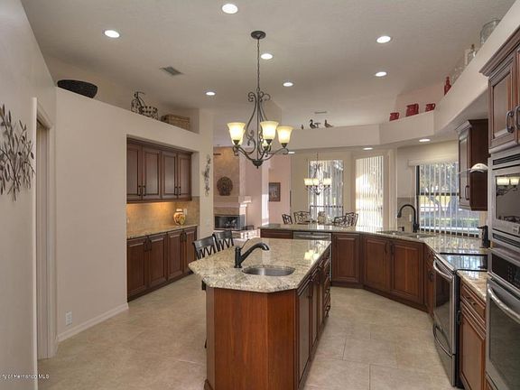 Spectacular View overlooking the 5th hole on the Prestigious Glen Lakes Golf Course. This Home features 4 bedrooms/3 baths/3 car garage, family room, dining room, breakfast room, formal game room, gas fireplace with electronic ignition and remote control, fabulous designer kitchen granite counters, stainless steel designer appliances 2 ovens, center island , microwave, granite counters in baths, Salt water pool/spa with all new filter, pump, and control equipment in 2017, gas heater for spa and top of the line robot pool cleaner. LED lighting added to the lanie. New Roof & A/C in 2016. Ceiling fans in all rooms and lanie. Lanscape and palm trees upgraded in 2017 and 2019. Additional floored storage added above the garage and bedroom area. Glen Lake is a Gated Private Golf Course Community.