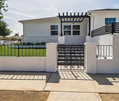 REMODELED and professionally designed. Your eyes will be captivated by this home's beauty at first glance with its perfect curb appeal. Lush landscape with a beautiful exterior and custom limestone stairway leading up to the pergola patio entrance. As you walk through the doors, this stunning 3 bedrooms, 2 bathroom, open floor plan home is perfectly planned w/ an open living room to the kitchen plus access to your backyard oasis, ideal for entertaining. The Brand New open concept kitchen is definitely to be desired with new cabinets, new quartz counter tops, new stainless steel appliances, a gorgeous center island, formal dining area & new chandelier offering plenty of room to entertain & enjoy with ease. New spa like bathrooms come complete w/ new vanities, new white porcelain flooring, new vessel sinks, new porcelain tile, new low flow toilets, new dual vanities, new faucets & plenty of cabinet space. This home features new dual pane low-e windows throughout, a new 30 year shingle roof, new LED recessed lighting, new hardwood laminated flooring. This property has, copper plumbing, central air conditioning & heat and so much more! Including a spacious bonus laundry area. This home offers a custom built concrete patio (deck), Custom patio cover, privacy & security with stucco finished block walls and wrought iron fencing. Additional storage shed w/ tons of storage space and a finished 2-car garage with a new electric garage door. This house is a Super Turnkey Dream Home