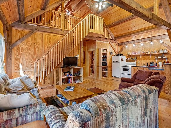 10 Lakefront acre with darling cabin. HOME SELLS AS IS.... Cabin is a timber frame with SEIP panels. Basement is partially finished. Damage on back deck. . Deck is being repaired. Home has CHA, and nice lakeview. Sits in middle of grove of pine trees. 2 lots, 2 bedrooms and 2 baths, plus sleeping loft. Do not open back door on either floor due to deck damage. Do not allow children to be unattended due to deck damage. No dock or boatslip .$15,000 repair allowance paid at closing.