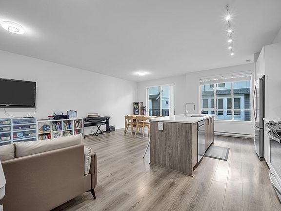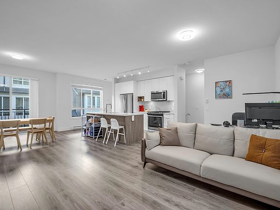 Welcome to Canopy by Streetside Developments. This rarely find 4 bedroom, 3.5 bathroom townhome features a bright, spacious main floor with an open-concept layout. The gourmet kitchen, quartz countertops, stainless steel appliances, a gas range, and a large island ideal for entertaining. The adjoining living and dining areas open onto a private, fenced outdoor patio, complete with a BBQ-ready setup. Upstairs, you will find three generous bedrooms, including a primary suite with a walk-in closet and double sink ensuite. The lower lvl offers flexibility with an additional bedroom or home office complete with its own ensuite. Well-equipped gym, clubhouse, and direct connection to Tynehead Regional Park trails. Conveniently located with easy access to Highway 1, shoppings and schools.