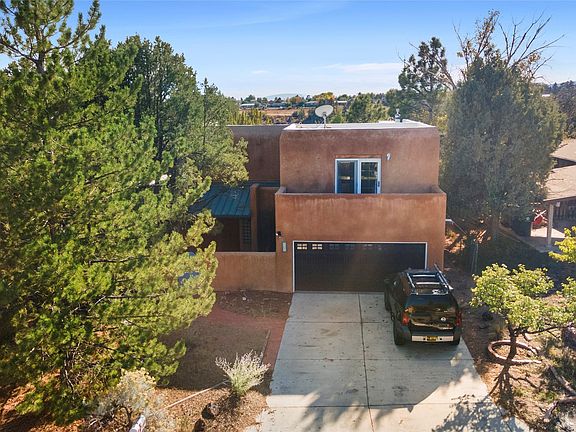 Nestled on the picturesque North Mesa in Los Alamos, this stunning Northern New Mexico-style house offers breathtaking canyon views and a serene lifestyle. The home features three spacious bedrooms and two well-appointed bathrooms, showcasing traditional adobe interior construction that embodies the region's architectural charm. The large primary bedroom includes an expansive closet, perfect for storage and organization. Enjoy outdoor living on the deck that overlooks the canyon, ideal for entertaining or simply soaking in the amazing scenery. Recent upgrades include a new roof and efficient mini-splits for air conditioning, ensuring comfort throughout the seasons. The dining area is enhanced by a fireplace with an insert, creating a warm ambiance during cooler nights. Located on a quiet cul-de-sac, this property includes a convenient two-car garage, providing ample space for vehicles and storage. Experience the unique blend of comfort and natural beauty in this exceptional home