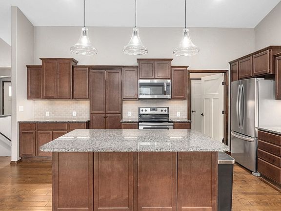 Welcome to this stunning 5 bedroom, 3 bathroom home located in one of Mulvane’s most desirable neighborhoods. Designed with an open-concept layout and a warm, inviting color scheme, this home is perfect for both everyday living and entertaining. The main floor features rich hardwood floors and a cozy fireplace in the living room. The gourmet kitchen boasts custom wood cabinetry, granite countertops, stainless steel appliances, and a spacious walk-in pantry. The master suite is a private retreat with its own en-suite bathroom, complete with a separate soaking tub and walk-in shower. Downstairs, you’ll find a large basement with stained concrete floors and a full kitchen - ideal for a mother-in-law suite, guest quarters, or additional entertaining space. Outside, the backyard offers a custom patio that is partially covered, perfect for relaxing or entertaining. An attached 3 car garage provides ample parking and storage, rounding out this home’s exceptional features.
