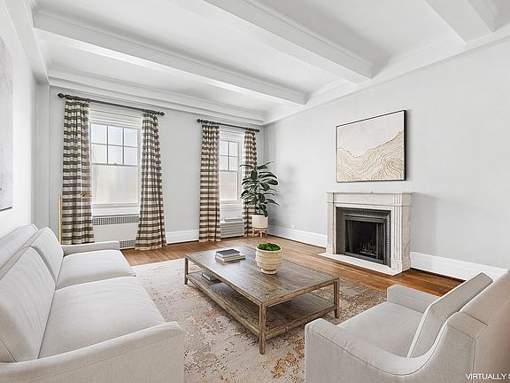 Graced with a wood-burning fireplace, gorgeous finishes, and spacious rooms, this lovely pre-war residence exemplifies classic Upper East Side refinement and style. Beautiful hardwood floors sit beneath charming beamed ceilings, while 6 tall sash windows let in abundant natural light.