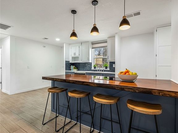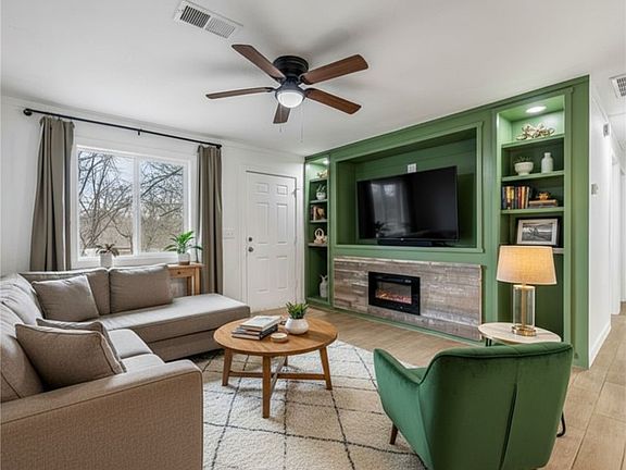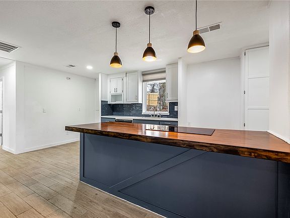 Nestled on 1.20 acres of wooded, secluded land with breathtaking views, this beautifully updated home offers a perfect blend of modern style and charm. The stunning kitchen boasts two-tone cabinets, wood and quartz countertops, an electric cooktop, stylish lighting, a gorgeous backsplash, and ample pantry storage. An open floor plan showcases a striking focal wall in the living room with built-in storage, wood-look tile flooring throughout, and an electric fireplace. The primary suite features a spa-like bathroom with a walk-in tile shower and elegant vanity, while two secondary bedrooms and an office provide plenty of space. Fully remodeled second bathroom. Fenced-in area for pets complete this incredible property! Freshly paved driveway to make accessibility easier.