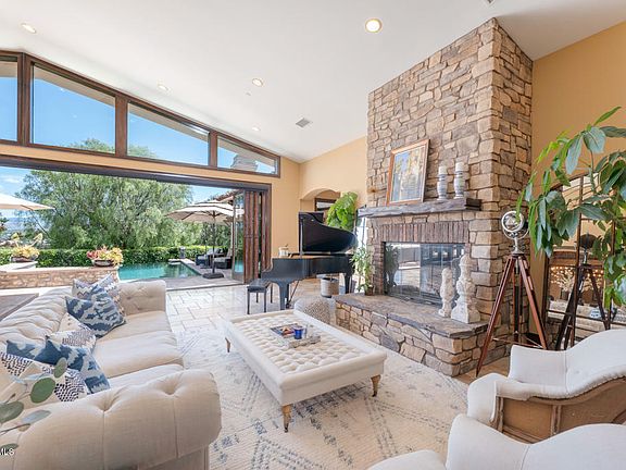 The ultimate luxury vacation right in your own secluded villa! Captivating views surround this private, custom-built hilltop oasis ¬- a MUST SEE! The open floorplan flows seamlessly to the outdoors creating a true entertainer's paradise. Both the living room and family room feature high ceilings, gorgeous inviting fireplaces and are filled with tons of natural light. The gourmet kitchen boasts a huge island with a breakfast bar, built-in wine storage, double ovens, a walk-in pantry and a separate eat-in area. The formal dining room is a showpiece! The spa-like master retreat is incredible and offers a fireplace, breathtaking views, a dual head shower, jetted soaking tub, vanity area, massive walk-in closet and mosaic inlays. All addt'l bedrooms are also en-suite with walk-in closets and one features its own private entrance. Relax in your resort-like tranquil outdoor escape with endless views, an infinity pool and spa, built-in BBQ, patio, lush landscaping and separate grass area. Custom high-end details throughout, high ceilings, wide hallways, large laundry room, EV garage charging, owned solar system, dual-zone climate control, indoor/outdoor speakers, in-ceiling sprinklers and its amazing location complete this stunning estate. Your sanctuary awaits.