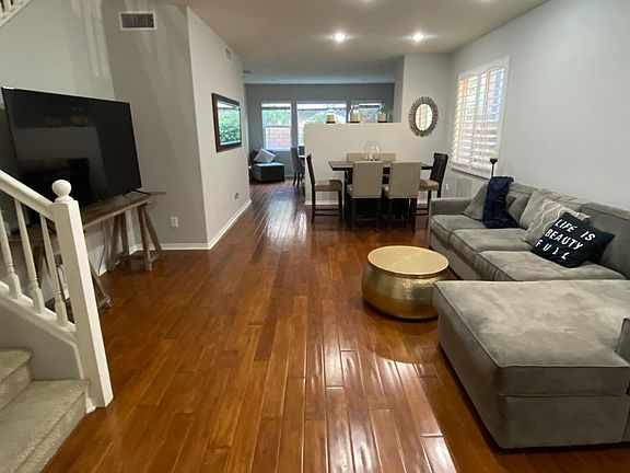 Spacious 4 bedroom home in Tomlinson Park with downstairs bedroom and bath! This home exudes comfort and charm starting with the wrap around porch and welcoming entrance. This is a very popular open floor plan with 4 bedrooms, living room, family room, dining area and breakfast area, loft and study alcove. Spacioius living room/dining room leads you to the family room with a cozy fireplace. The family room opens to an eating area and into the large open gourmet kitchen with island and plenty of counter space. The small back yard offers enough space to BBQ or just relax. There is great natural light throughout the house. This beautiful, upgraded, well maintained home has gorgeous hardwood floors in the living room and dining room; crown molding, 9' ceiling downstairs, smooth ceiling, recessed lighting, and double pane windows. The large, luxurious master suite has 2 walk-in closets, separate soaking tub, dual vanities and walk in shower. There is a huge loft for a den, office, playroom, etc. There is also an alcove that could be used for a small office, library, reading area, storage, or whatever you need. Inside laundry room. Plenty of space for everyone! Great Brea community with Community pool, spa, and BBQ's. Founders park provides an open field, basketball and tennis courts and playground. Close to schools, shopping, entertainment, freeway access. No pets or smoking allowed. Available October 10.