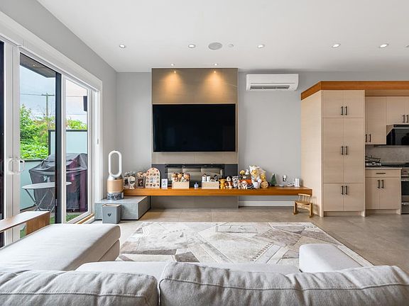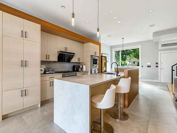 This contemporary home blends modern design with exceptional functionality in a prime location. Featuring a 10-ft ceiling on main floor, radiant heating, air conditioning, water filtration system and warm wood wall paneling, it offers comfort and luxury. Abundant natural light from a large skylight along with seamless indoor-outdoor flow, creates a modern, inviting atmosphere. The gourmet kitchen includes high-end appliances, custom cabinetry and a large island. A private backyard with a deck is ideal for entertaining. The lower floor features a spacious office and a well-appointed legal suite, providing a mortgage helper and added flexibility. The home is close to shopping, parks, and top schools, combining design, functionality, convenience and luxury in one unparalleled residence.