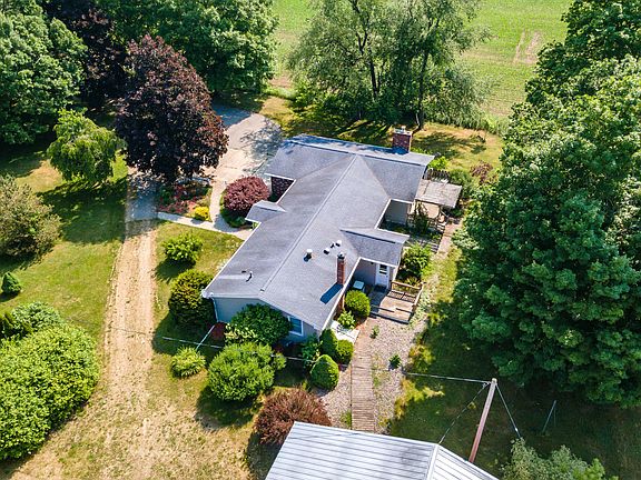 Custom brick ranch, quality built home, offering 1600+/- Sq. ft on the main floor & partially finished basement with extra space for all of your hobbies, an office or even a few more bedrooms if needed. The ideal floor plan with openness feels from the living room, front room, and the grand kitchen including all appliances, tons of cabinetry, countertops & snack bar. You love the relaxing ambiance the brick wall to wall gas fireplace creates, bay windows, slider off to the deck to enjoy the stillness of the 13 acres, mature trees, gardens & wildlife. 40 x 80 pole barn w/concrete, electric with a section heated & insulated. Lean two and additional storage shed. Endless possibilities, 13 acres of untouched soil, prime spot for organic farm, pheasants forever habits, hobby farm. Easy commute to M-49, M-99 & US12
