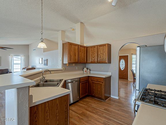 * *Range Priced. Seller will accept or counter offers between $320,000-$335,000.* Wonderful Home on Corner Lot in Rita Ranch Community. 2180 Square Feet with 4 Bedrooms, 2 Bathrooms and Split Bedroom Floor Plan. Bright Interior Features Dining and Living Rooms plus Oversized Family Room. Cozy Kitchen with Breakfast Nook, Gas Range, Large Pantry and Breakfast Bar. Master Bedroom Includes Ensuite Bath, Garden Tub, Separate Shower and Walk-in Closet. Three Other Bedrooms and Guest Bath are on Opposite Side of Home. Large Covered Patio in Back Yard, Built-in BBQ and Fenced Pool. Desert Sky Middle School conveniently located nearby. 2-Car Garage and Low HOA.