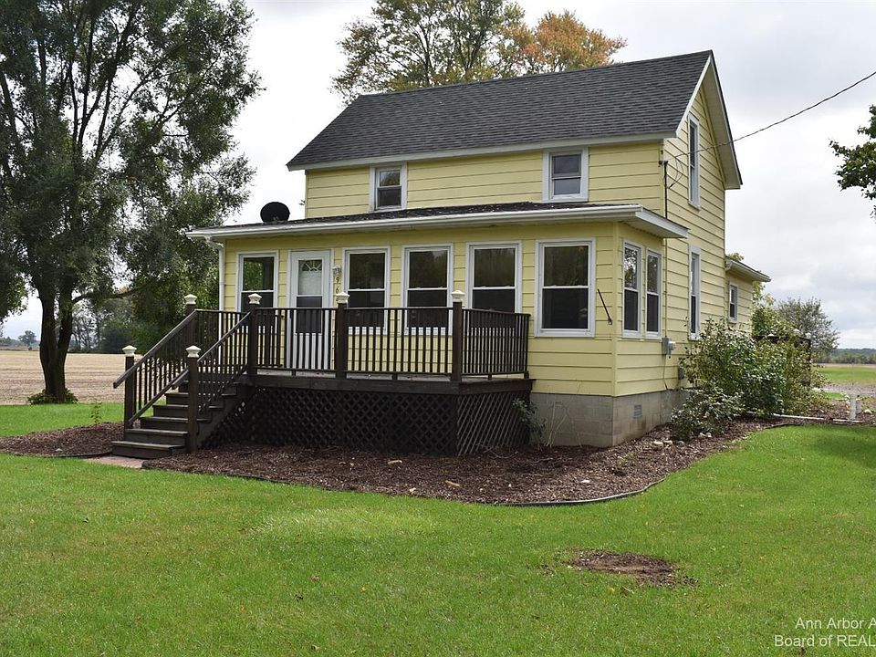 Subject to final split and approval from London Township, come make this HOME SWEET HOME yours TONIGHT!!! Located on 10 acres, this charming 1.5 Story greets your arrival. With 1120sqft. of living space, 2 - 3 Bedrooms which includes a second floor loft area, 1 Bath, a Michigan Basement w/Laundry area and an inviting front porch surrounded by light-filled windows and warmth galore! A detached 2.5 Car Garage along with a neighboring 1 Car Garage perfect for all your outside hobbies and front/back decks for all to enjoy!! Milan Schools, London Township Tax Base. Come fall in love!! Property with 20 acres can also be purchased as a whole!