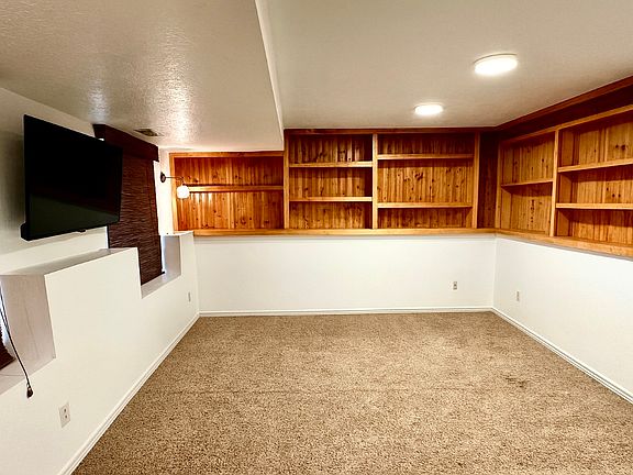 Covered porchAccess to large yardBright open kitchenPlenty of cabinetsBuilt in entertainment center