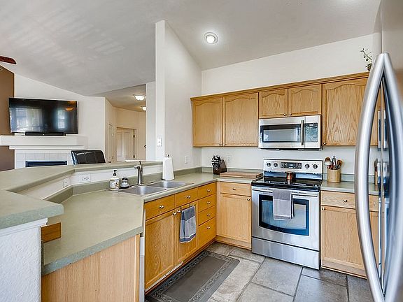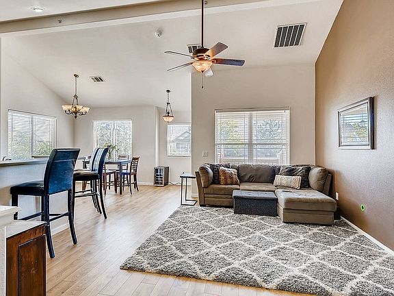 Welcome Home, to this largest unit in the complex, beautifully updated end-unit condo with a 1-car garage in Littleton's desirable Deer Creek community! You'll fall in love with the open concept layout of the main living space, with beautiful flooring flowing throughout, vaulted ceilings, an abundance of natural light, and a cozy gas fireplace! The formal dining space provides plenty of room for entertaining, and overlooks the large kitchen with stainless steel appliances, high-top bar, and ample counter space and cabinet storage! Don't forget to step out onto the private patio off the living room, and imagine enjoying the sunset on a beautiful Colorado evening. Continue into the spacious master retreat, featuring vaulted ceilings, walk-in closet, and a full ensuite bath with dual vanity! Head down the hallway to view the additional 3/4 bath perfect for guests, along with a second bedroom, laundry space, and storage closets! With it's gorgeous interior, close proximity to a wealth of shopping and dining options, community pool, fitness room, and clubhouse, this home is the perfect mix of comfort and convenience!