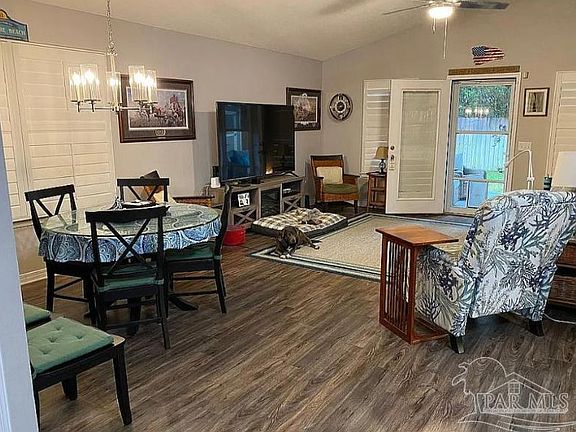 Brick 4br, 2ba with enclosed 4 season room. Nestled in a quaint safe community. Lots of recent updates! 2024 New Roof, New AC, New Hot Water Heater. 2023 New Windows with storm covers. New custom Walk in Shower. 2022 New Kitchen with Kitchen Aide Appliances. Split Floor Plan, Master Separate from 3 addl. Bedrooms. 12x25 4 Season Room ands an extra 300 sq feet. Large Shed, Wide Driveway, Custom Pantry, Plantation Shutters or 2” Blinds at all Windows. Updated Front Door, Storm Doors. Dog Ready Yard, built in Dog Door. House has 29 Solar Panels. Low Energy Cost! Neighborhood has a Gated Entrance, Pool, Walking Path, and Lake with Gazebo. Located just 6 miles from Hurlburt Field and 5 Miles from Navarre Beach.