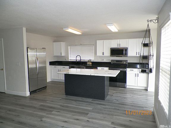 Sky Vista Village home with four bedrooms, three full bathrooms including one downstairs bedroom and full bath. The spacious home includes a loft area and an oversized master bedroom with walk-in closet. Recent upgrades include laminate flooring, kitchen island, counter top and refinished cabinets. The home offers a lot of windows providing plenty of natural light throughout. The living area is at the front of the home with an adjoining dining area, then the open kitchen and family area., The open family room include a fireplace and the downstairs bedroom and full bath are located at the back of the home and near the garage entrance. The kitchen is located at the rear of the home with a sliding door to access the oversized lot providing room for entertainment. Kitchen stove, microwave and refrigerator in storage and to be re-installed. There is plenty of parking that comes with the corner lot. Located near Hwy 395, Reno & Sparks, NV. and not far from colleges, schools, parks, Lake Tahoe, USA Pkwy, Susanville and much more.