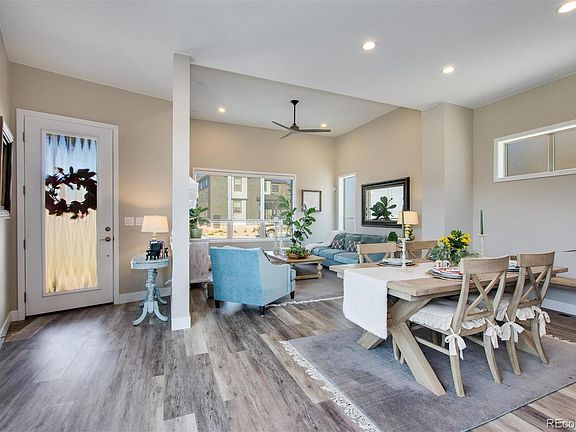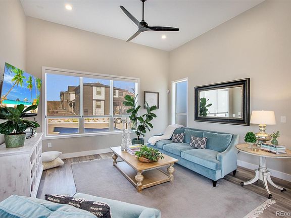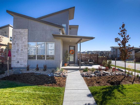 Better than new! Amazing price and opportunity in the coveted Sterling Ranch community. This popular, modern model features a corner lot with partial mountain views and numerous upgrades both inside and out. As you walk in, the wide-plank, updated wood flooring captures the overall mood of this modern layout. 12-foot ceilings in the family room and a 16-foot window and slider create an indoor/outdoor space with a large, south-facing patio and grass area. $15k+ spent on updates in landscaping on this corner lot from the front yard and entry all through the spacious yard, fully fenced. In the kitchen, the modern cabinets complement the Bosch stainless steel appliances, quartz counters offering plenty of entertainment space and seating. The light and bright main-floor office is surrounded with windows and is the perfect work from home space. There is also a half-bath on the main floor. Updated carpet throughout. Upstairs, you'll find a large primary bedroom, with gorgeous modern tile and appointments in the master bathroom with walk-in closet. There are also two spacious guest bedrooms with jack-and-jill bathroom complete with dual vanity, quartz counters and marble floors. The finished basement offers a fourth bedroom with egress window, an elegant 3/4 bathroom and a large space for movies, games and more. Smart home control center (touchscreen included). Wired for security. This is the one you have been waiting for in popular Sterling Ranch, don't miss out!