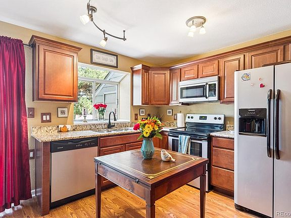 Welcome home to this beautifully refreshed 2-story, 2-bedroom, 3-bath townhome-style condo tucked away in the sought-after Dakota Station community—where modern updates meet timeless charm. Thoughtfully designed and full of cheer, this home blends modern updates with classic details to create a warm, inviting space you’ll love coming home to. The main level showcases beautiful flooring and a bright, open layout that flows effortlessly from the cozy living room—complete with a fireplace and plenty of sunshine—right into the dining area and kitchen, making it perfect for everyday living and effortless entertaining. The kitchen is a true standout, showcasing sleek granite countertops, rich cherry wood cabinetry, stainless steel appliances, and a sunny bay window that overlooks your private patio. Just outside the sliding glass door is your own outdoor escape—a peaceful patio perfect for dining under the stars, weekend gardening, or simply relaxing after a long day. Upstairs, the primary suite feels bright and breezy with its vaulted ceilings, charming bay window, and an updated ¾ bath that adds a touch of style to your daily routine.The second bedroom brings the same airy vibe with vaulted ceilings and tons of natural light—plus it’s perfectly positioned right next to a full bath, making it an ideal setup for guests, roommates, or your dream home office. Bonus perks: In-unit laundry with washer and dryer, a reserved parking space right out front, and ample guest parking nearby. The Dakota Station community offers a sparkling pool, clubhouse, and tennis courts, all maintained by a low HOA that covers water, trash, and snow removal—making life here refreshingly low-maintenance. Tucked away in a quiet, well-kept neighborhood near parks, trails, top-rated Jeffco schools, and local dining, with quick access to C-470 for easy commuting or weekend getaways, this home is the perfect mix of comfort, convenience, & style. Come see it for yourself—homes like this don’t last long!