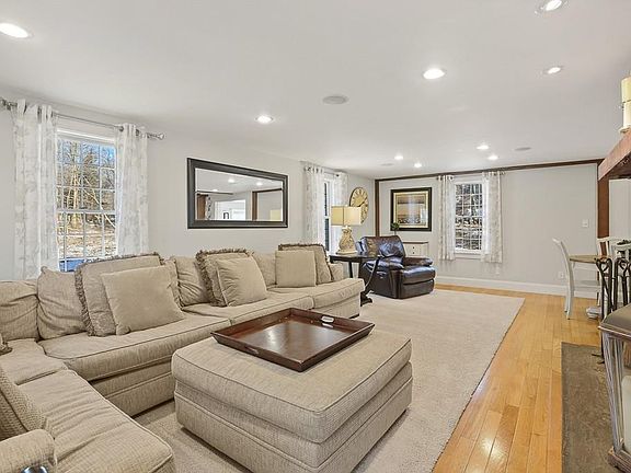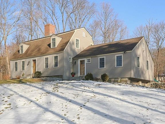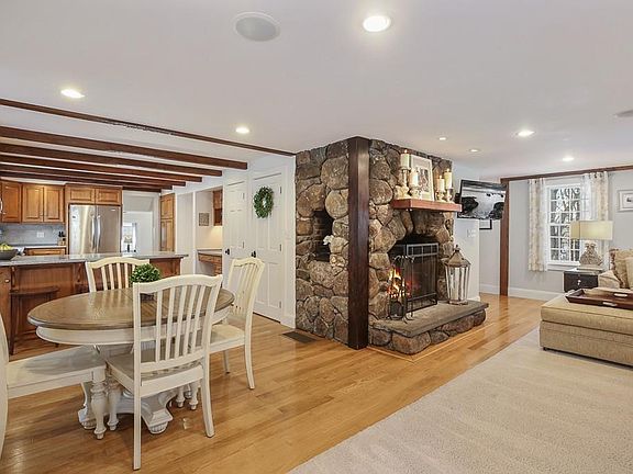 Beaming with warmth and charm, this picture perfect Contemporary Colonial is set on a 3.1 acre lot set back from the road for absolute privacy. Highlights include a beautiful kitchen with stainless steel appliances, tile back-splash, hardwood floors, Corian counters, a peninsula, and an indoor grill. Inviting living room has a stone fireplace, recessed lighting, hardwood floors and is wired for surround sound. Dining room with hardwood and exposed beams. Family-room off the kitchen offers vaulted ceiling with exposed beams, wall to wall carpeting with sliders to new Trex deck which over looks a large private backyard surrounded by a stone wall. 1st Floor master suite with 2 additional large front to back bedrooms on the 2nd floor. Both bathrooms have been updated. Tiled mudroom at the entrance is perfect storage as you enter the home. Newer A/C and Heating system. Seller in the process of installing new septic system
